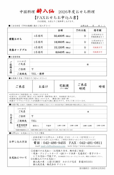 2026年「おせち料理」販売開始